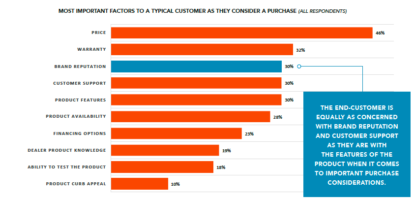 In fact, both dealerships and end consumers rank “product relevancy” and a “brand’s reputation or story” at the top of the list in deciding factors when making a purchase.