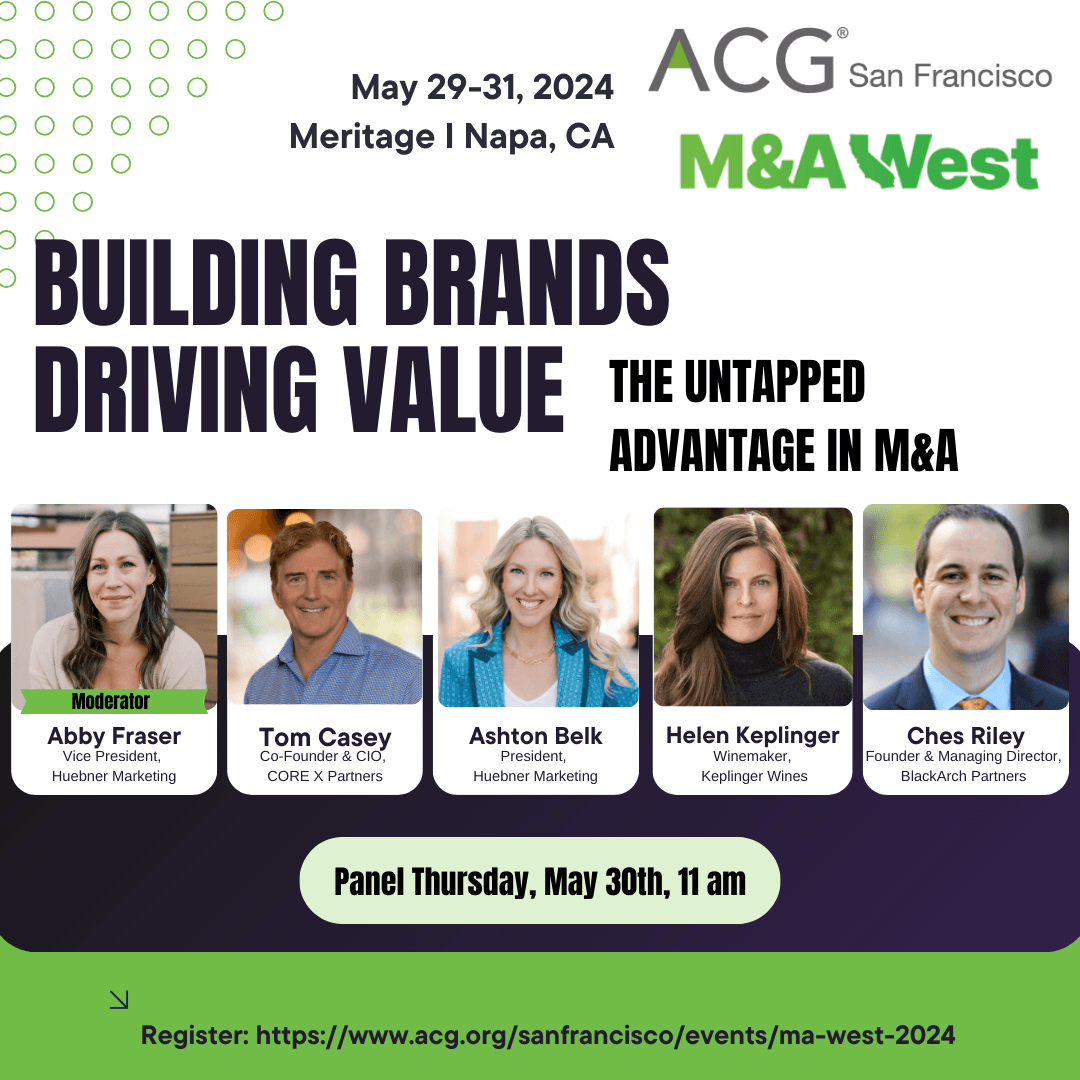 Join Huebner Marketing at M&A West in Napa this May and discover the power of branding in driving M&A value creation. We look forward to sharing the insights and innovations from our panel on LinkedIn and here on our blog for those who can’t attend.