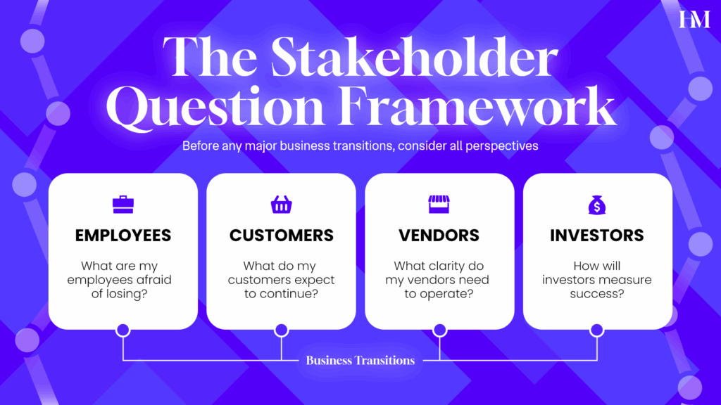 The result? Smooth transitions, maintained trust, and preserved business momentum during critical changes. More importantly, they demonstrate the kind of intentional leadership that creates competitive advantage.