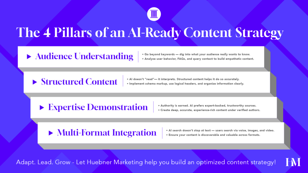 At Huebner Marketing, we’ve watched countless clients reach new customers, markets, and sales objectives through the power of strategic communication. The secret hasn’t changed – effective strategic communication is still about crafting messages that make your audience feel understood, supported, and empowered. What has changed is how those messages must be structured, delivered, and optimized for discovery in an AI-powered world.